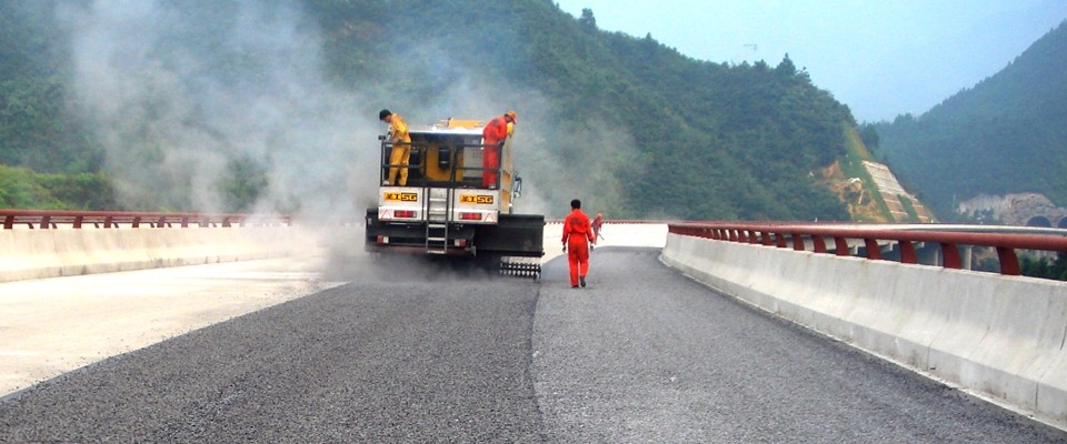 1、同步碎石封層作為橋面防水粘結層能夠有效的防止水分滲透混凝土橋面板,防止主梁和橋面板的鋼筋被銹蝕,同時能夠吸收瀝青混凝土鋪裝層與橋面板之間的應力,防止瀝青混凝土鋪裝層的剪切推移變形。