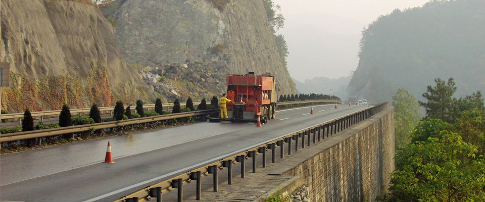 4、微表處使用改性乳化瀝青,可延長施工時間,施工速度快,成型快,縮短了開放交通時間。