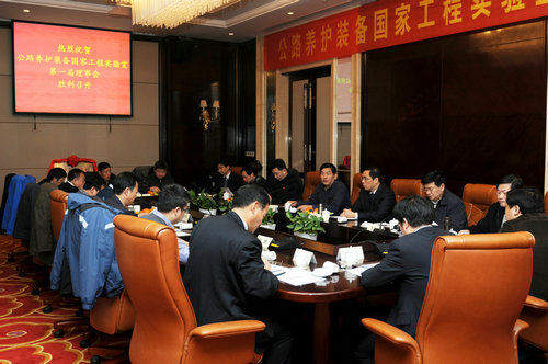 2012年12月14日公路養護裝備國家工程實驗室第一屆理事會在河南省新鄉市召開。河南省發展和改革委員會副處長魏明旭、河南省交通運輸廳科技處處長宋華東、河南省交通運輸廳科技處主任張鵬、交科院道路結構與材料研究中心主任魏道新、交科院道路結構與材料研究中心副主任陳景、新鄉市發展和改革委員會技術科科長郜俊洪、公路養護裝備國家工程實驗室理事長單位河南省高遠公路養護技術有限公司董事長公路養護裝備國家工程實驗室主任劉廷國及實驗室共建單位的理事和領導成員共18人參加會議