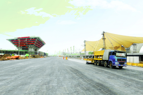 As the Shanghai world expo China pavilion decorated with rich color "China red", it has shown a "Oriental crown" magnificent posture, Shenggong slurry seal equipment also successfully completed the layer pavement before the China pavilion.